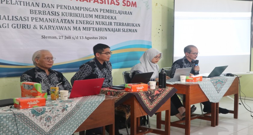 Sleman, 27 Juli 2024 – Dalam upaya meningkatkan kapasitas dan kualitas pendidikan di Madrasah Aliyah Miftahunnajah Sleman, Tim Pengabdian kepada Masyarakat (PPM) Departemen Pendidikan Fisika dan Departemen Fisika Universitas Negeri Yogyakarta (UNY) telah menjalin kerjasama dengan MA Miftahunnajah. Program pelatihan ini berlangsung dari tanggal 27 Juli hingga 13 Agustus 2024, dengan fokus utama pada peningkatan kemampuan guru melalui pelatihan berbasis Kurikulum Merdeka dan sosialisasi pemanfaatan energi nuklir terbarukan.