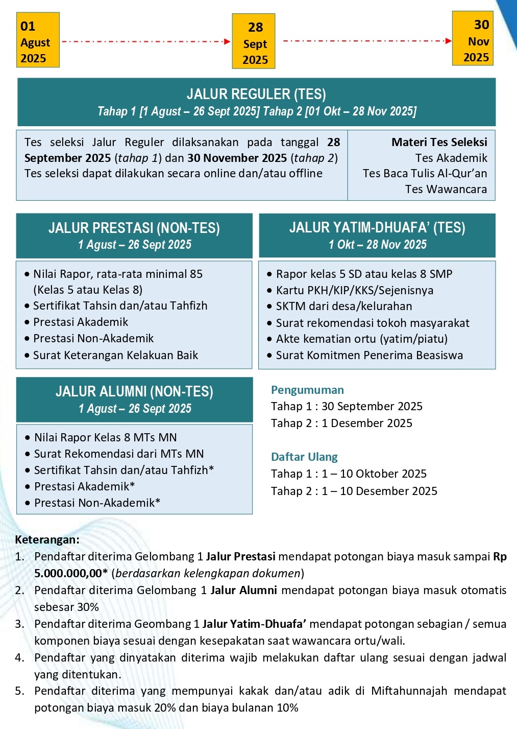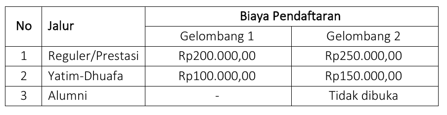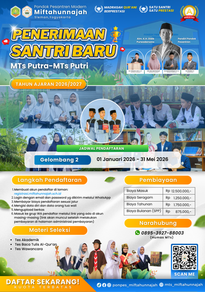 Penerimaan Santri Baru (PSB) harus memenuhi asas obyektifitas, akuntabilitas, transparansi, adil dan kompetitif.