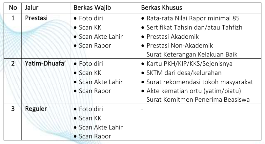 Penerimaan Santri Baru (PSB) dilaksanakan secara luring (luar jaringan) dan/atau daring (dalam jaringan)