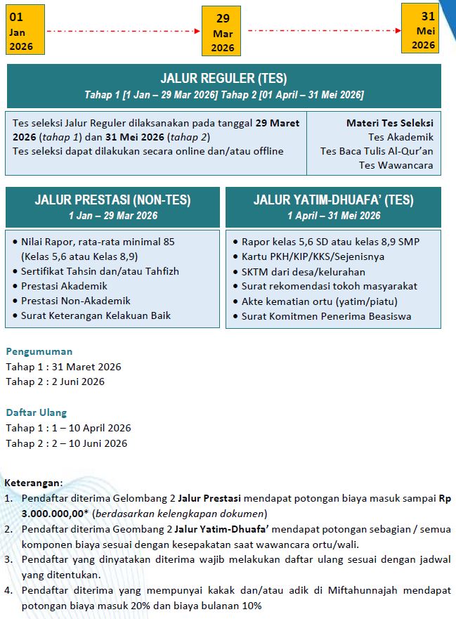 • Pendaftar jalur reguler dan/atau jalur beasiswa yatim-dhuafa'.